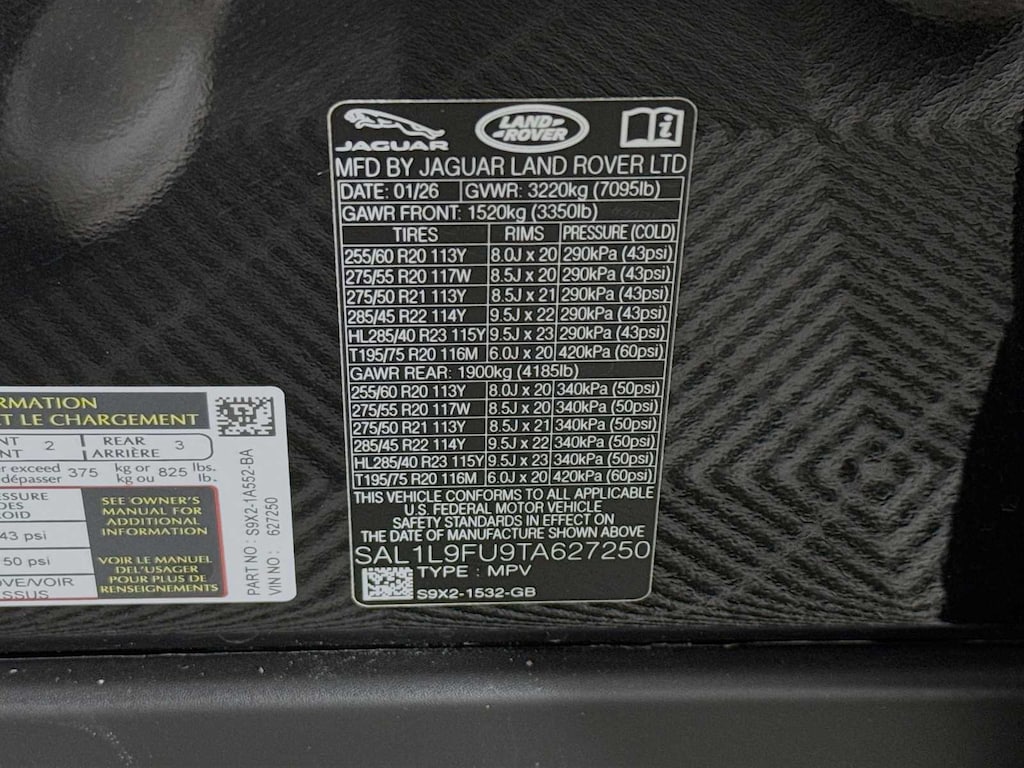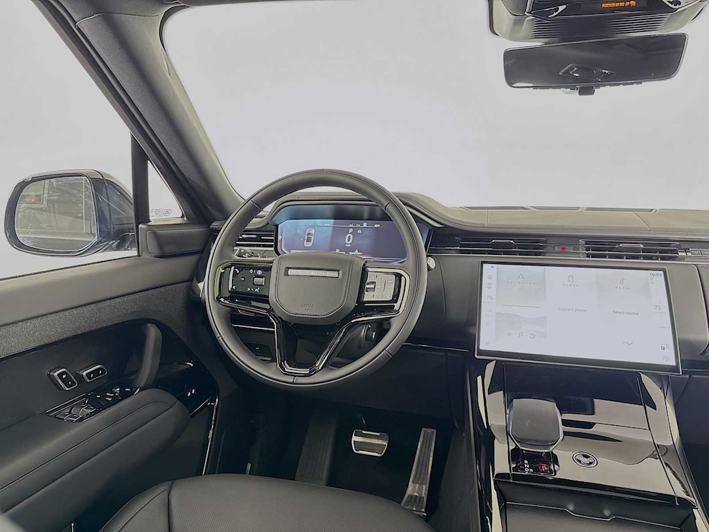 WHEELS: 23 DIAMOND TURNED (STYLE 1075): gloss dark grey contrast, Tires: 23, PREMIUM UPGRADE INTERIOR PACKAGE: Configurable Cabin Lighting, SV Bespoke Full Extended Leather Upgrade, Solar Attenuating Windscreen, SV Bespoke Carpet Mats, COMFORT PACK: Cabin Air Purification Pro, 4-Zone Climate Control, Front Center Console Refrigerator Compartment, Laminated Front & Rear Side Glass, Twin-Blade Sunvisors w/Illuminated Vanity Mirrors, TECHNOLOGY PACK: Domestic Plug Socket, Park Assist, Clearsight Interior Rear View Mirror, Head-Up Display, RADIO: MERIDIAN 3D SURROUND SOUND SYSTEM, NATURAL BLACK VENEER, PREMIUM INTERIOR PROTECTION & STORAGE PACK, SANTORINI BLACK METALLIC, SOFT DOOR CLOSE, 23 FULL SIZE SPARE WHEEL, COLD CLIMATE PACK: Heated Washer Jets, Heated Windscreen, DYNAMIC EXTERIOR PROTECTION PACKAGE, 20-WAY ELECTRIC HTD & VENTILATED FR SEATS W/MEMORY: heated and ventilated power recline rear seats, EMERGENCY PACK, RANGE ROVER HANDOVER PACK, EBONY, PERFORATED WINDSOR LEATHER SEAT TRIM.
