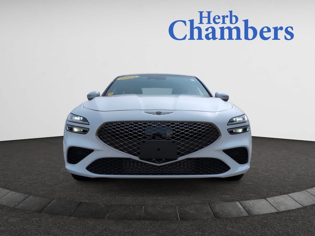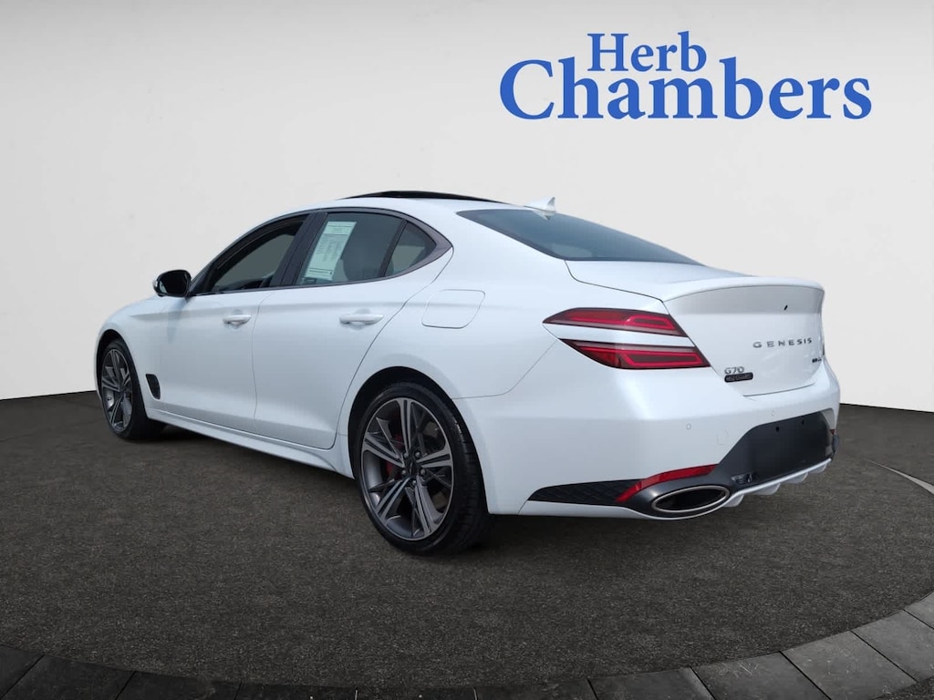 Leather Seats, Navigation, Sunroof, All Wheel Drive, Heated Driver Seat, Cooled Driver Seat, Turbocharged, Premium Sound System, Satellite Radio, iPod/MP3 Input, Onboard Communications System, Aluminum Wheels, Keyless Start, Dual Zone A/C, Apple CarPlay®. MP3 Player, Keyless Entry, Child Safety Locks, Steering Wheel Controls, Heated Mirrors. 2024 Genesis G70 with Uyuni White exterior and Fog Gray 2-Tone interior features a V6 Cylinder Engine with 368 HP at 6000 RPM*. CARFAX 1-Owner
